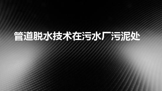 管道脱水技术在污水厂污泥处理中有着广泛的应用,主要应用在以下几个方面: