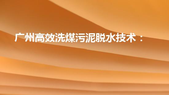 1. 高效洗煤污泥脱水技术具有处理效率高的优点,能够迅速将污泥中的有机物和杂质去除,从而达到警用排放的目的。