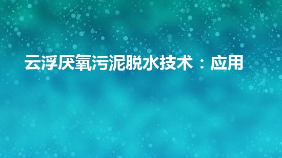 根据市场研究报告,厌氧污泥脱水技术是未来污水处理市场的重要发展方向,具有广泛的应用前景和发展潜力。