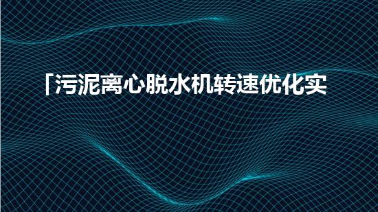 同时,优化设备转速可以节省能源成本,提高工作效率,为污泥处理技术的发展做出贡献。